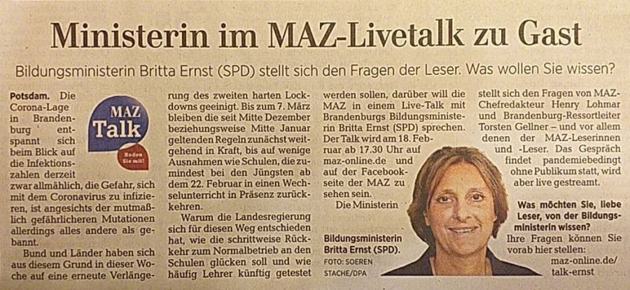 An alle Eltern und Schülerinnen und Schüler des Landes Brandenburg