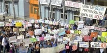 Schüler und Eltern protestieren gegen Unterrichtsausfall.